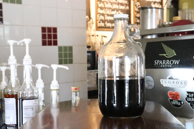 Our cold brew is made of coarsely ground coffee beans steeped for 16 hours then filtered. This brewing process results in a smoother, less acidic coffee.